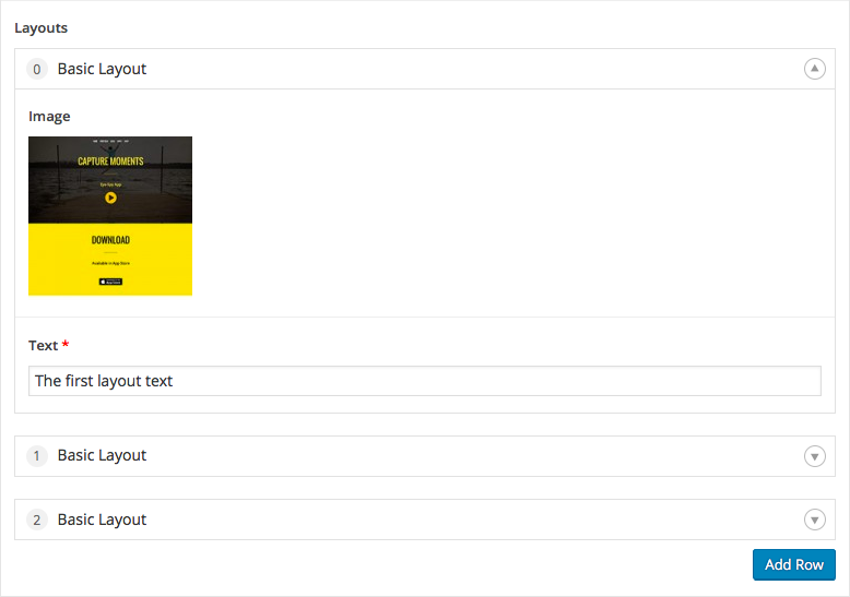 $title(string) The layout title text. Defaults to the layout name.$field(array) The field array containing all settings.$layout(array) The layout array containing all settings.$i(int) The layout index beginning at 0.